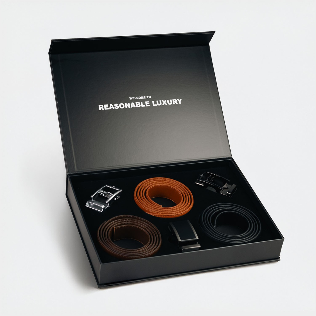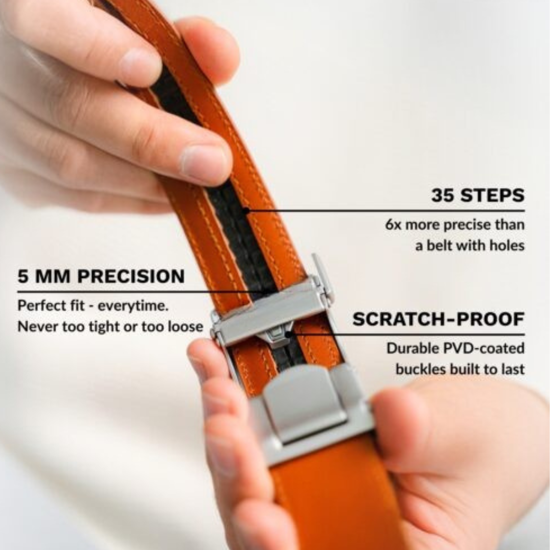 Chez Strapley, nous avons transformé la ceinture classique pour gentlemen. Au lieu de trous, la Trackline™ Strapley est cousue à l’arrière de toutes nos lanières.